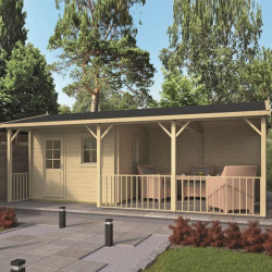 Tuindeco - Chalet bois massif ouvert - 9 m² + 19 m² de terrasse - Couvert - Madrier 40 mm - Ragna (sur commande)