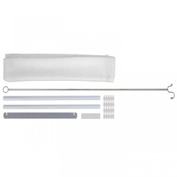 Le store de toit est composé d'1 rideau d'ombrage, de 20 patins avec oeillet à côté et de 2 barres métalliques de 19 mm x 60 cm.